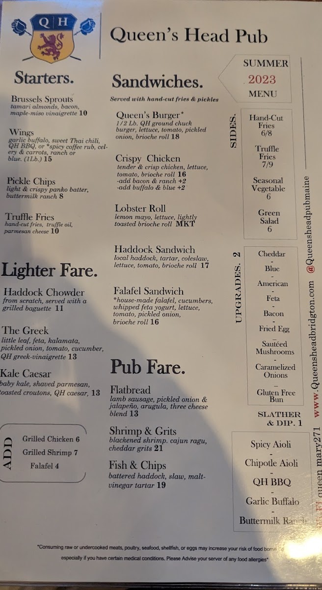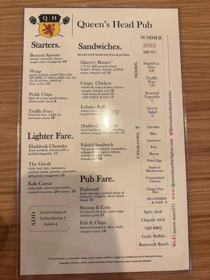 Welcome to the Queen's Head Pub, a delightful gem nestled along the brook in Bridgton, Maine. This cozy pub invites you to experience a mouthwatering menu that beautifully marries comfort food with a friendly atmosphere. From the famous Fish & Chips ($19) to the savory Shepherd's Pie ($18), each dish promises to delight your palate.