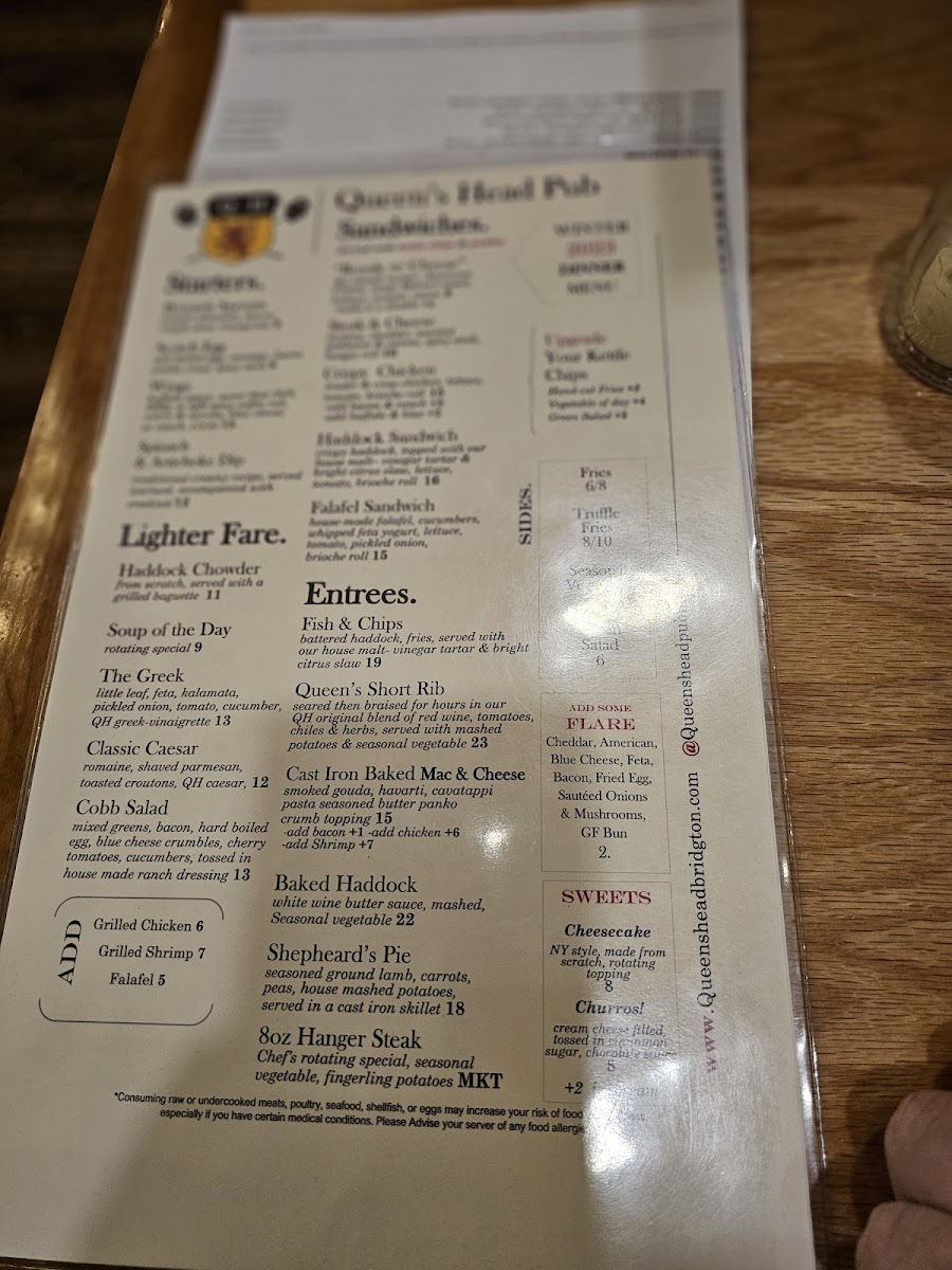 Guests rave about the Cast Iron Baked Mac & Cheese ($15) and the flavorful 8oz Hanger Steak ($23), showcasing the kitchen's commitment to quality. Whether you enjoy casual dining on the outdoor deck or the warm interior, the Queen's Head Pub offers an unforgettable culinary experience.